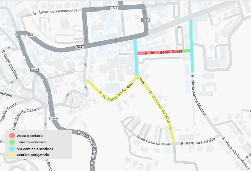Durante a execução dos trabalhos, com uma duração prevista de seis semanas, será invertido o sentido de circulação automóvel na Rua de Santa Maria, na zona da bifurcação com a Rua do Casal da Mina.
